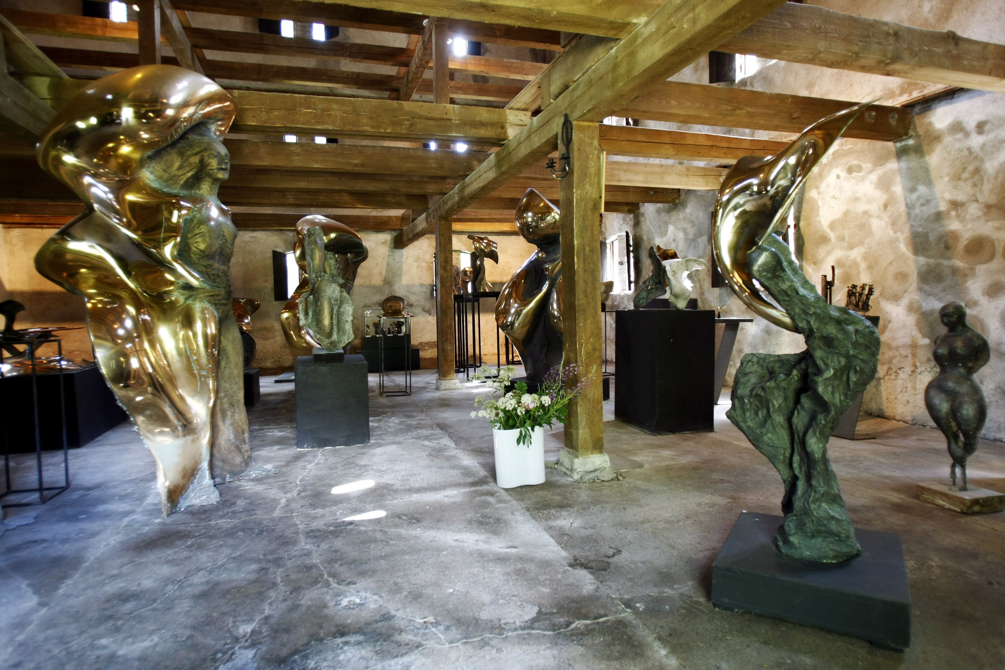 The architecturally striking granary, built out of natural stone, is from 1912, and is the only conserved building in the area. It houses the permanent part of the collection, works from 1955 to the present day. The artist has made the remaining portion of the stables her studio, renovating it considerably in 1986.